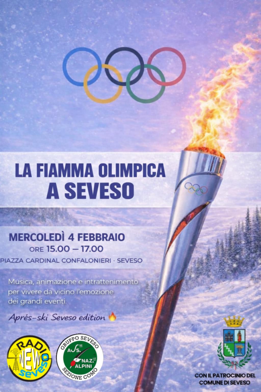 Il 4 febbraio Seveso sarà protagonista di un momento di straordinaria importanza, con il passaggio della Fiamma Olimpica in città. Un evento che segna la città e che diventa occasione di incontro, partecipazione e condivisione grazie anche all'iniziativa promossa da New Radio Seveso, in collaborazione con il Gruppo Alpini di Seveso e grazie al...